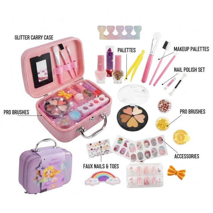 Kids Makeup & Jewelry Combo: The set seamlessly combines makeup and jewelry, offering a 2-in-1 play experience that caters to a child's diverse interests.